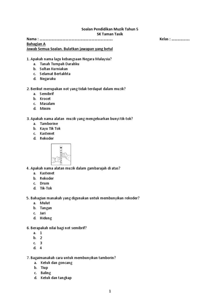 Sulit 7 (d) bulatkan jawapan yang betul kerincing gitar kertas soalan tamat kerincing tamborin.